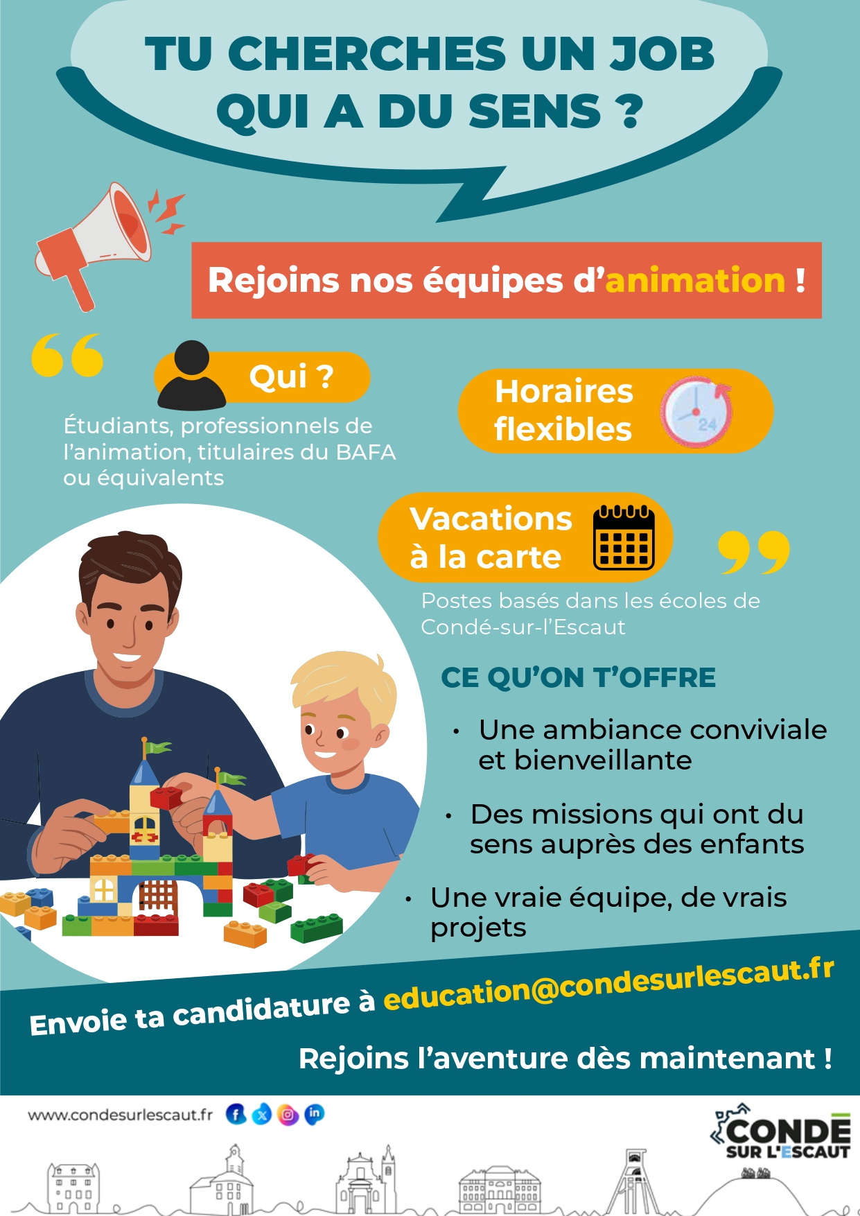 le ville de Condé sur l’Escaut recrute des animateurs.